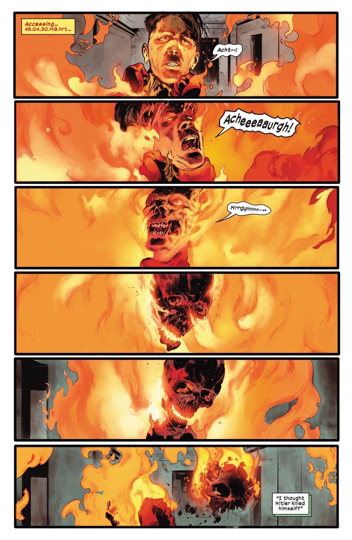 Let me try and run through all of the members to the best of my ability. Obviously the founder of the team is Iron Lad (Tony Stark) who is trying to follow in his father’s footsteps. His first teammate was Doom (Reed Richards) who was imprisoned and essentially enslaved by Maker (also a Reed Richards) to do his bidding. He has no superpowers, and all of his friends and family are dead courtesy of Maker. He was also forced to wear the classic Doom mask and take on the moniker because Maker is a dick. We also have Thor and Sif from Asgard (which was ruled by Loki in this universe thanks to the machinations of Maker). They also thawed out Captain America (Steve Rogers) who is basically the exact same as the traditional Earth-616 version. They also recruited She-Hulk (Lejori Joena Zakaria) who is from a small Pacific Island nation that had been subjected to numerous gamma bomb experiments from Bruce Banner (a much more diabolical Hulk in this universe) at the behest of Maker. There is also the classic Avengers couple of Giant-Man (Hank Pym) and Wasp (Janet Van Dyne), but Hank isn’t the same level of genius in this universe due to an accident and Janet is revealed to be a mole (though who she reports to may surprise you). America Chavez joined the team after being rescued from the White House where she was being used as a power source against her will. There is a new Hawkeye (Charli Ramsey) on this team who is a two spirit Native American looking to strike back at major corporations destroying the planet. Luke Cage is also on the team and fighting the prison-industrial complex from the inside in a clear nod to real life revolutionary George Jackson. Lastly, the team has the Human Torch. No, not that one. This is the android Jim Hammond from the Golden Age. He killed Hitler in this universe.