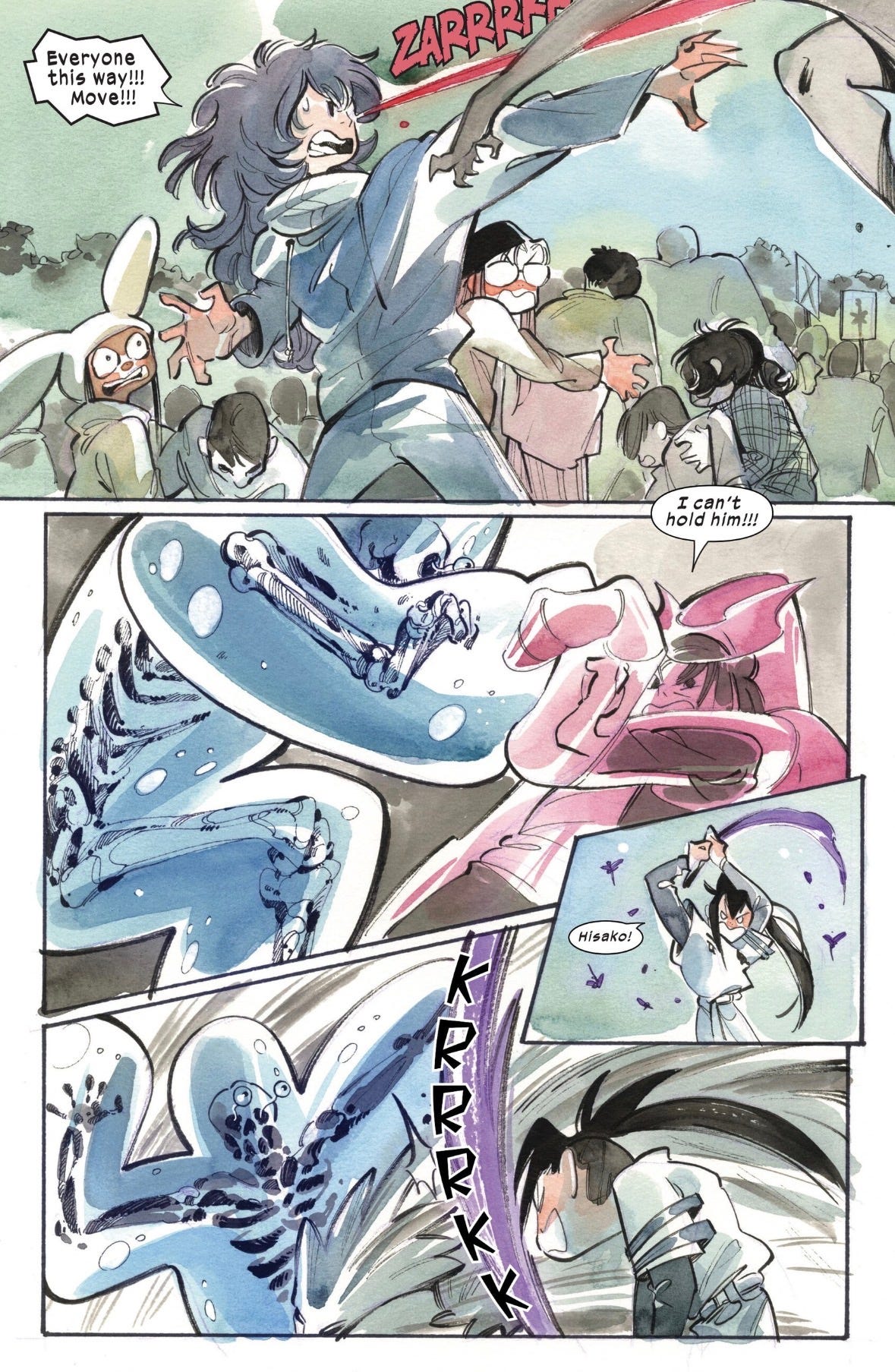 The obvious draw here is Momoko’s unique art style. The watercolor painting style she uses makes the comic look completely original within the line (and frankly in all of Marvel). She has also been afforded the creative control to write her own story with a distinctive Japanese flair. I’m going to be very curious to see how this is brought into Ultimate Endgame when the series concludes next month.