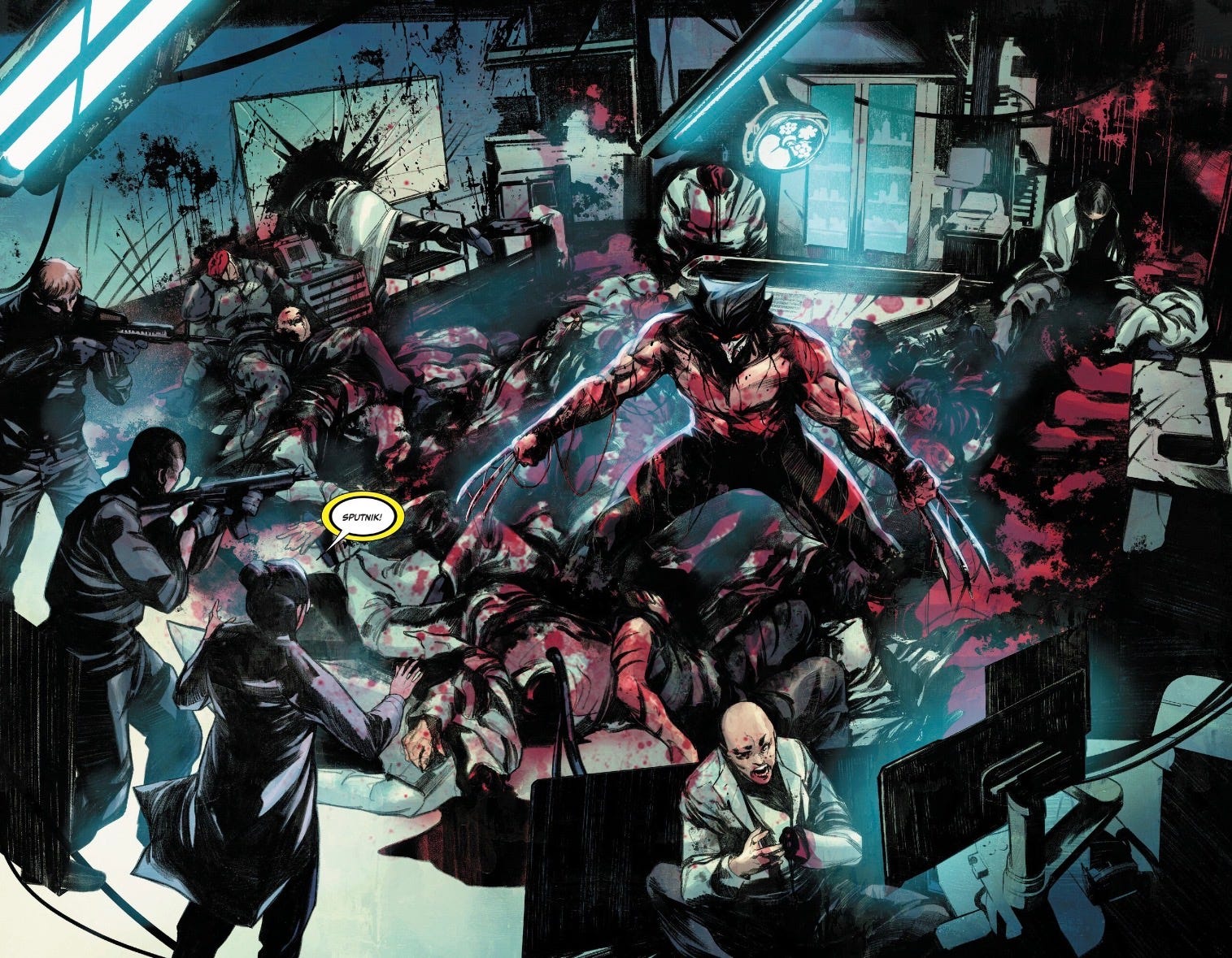 Logan was captured and brainwashed to serve as a super assassin for the Eurasian Republic (Colossus, Magik, and Omega Red) who rule what used to be Russia as part of the Maker’s Council. If you thought the Winter Soldier of Earth-616 was scary, just wait until you see what a Winter Soldier with indestructible bones, razor sharp claws, and a healing factor can do. His special set of skills are initially deployed in this book to hunt down and eliminate a resistance group called The Opposition. This is a mutant group composed of Mystique, Nightcrawler, Gambit, Sabretooth, Black Widow, Sprite, Mikhail Rasputin, Beast, Abigail Brand, and more. Basically any mutant not in Ultimate X-Men pops up in this book. Don’t get too attached though. A lot of these folks don’t make it.